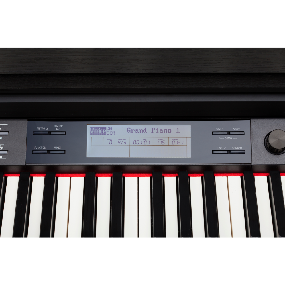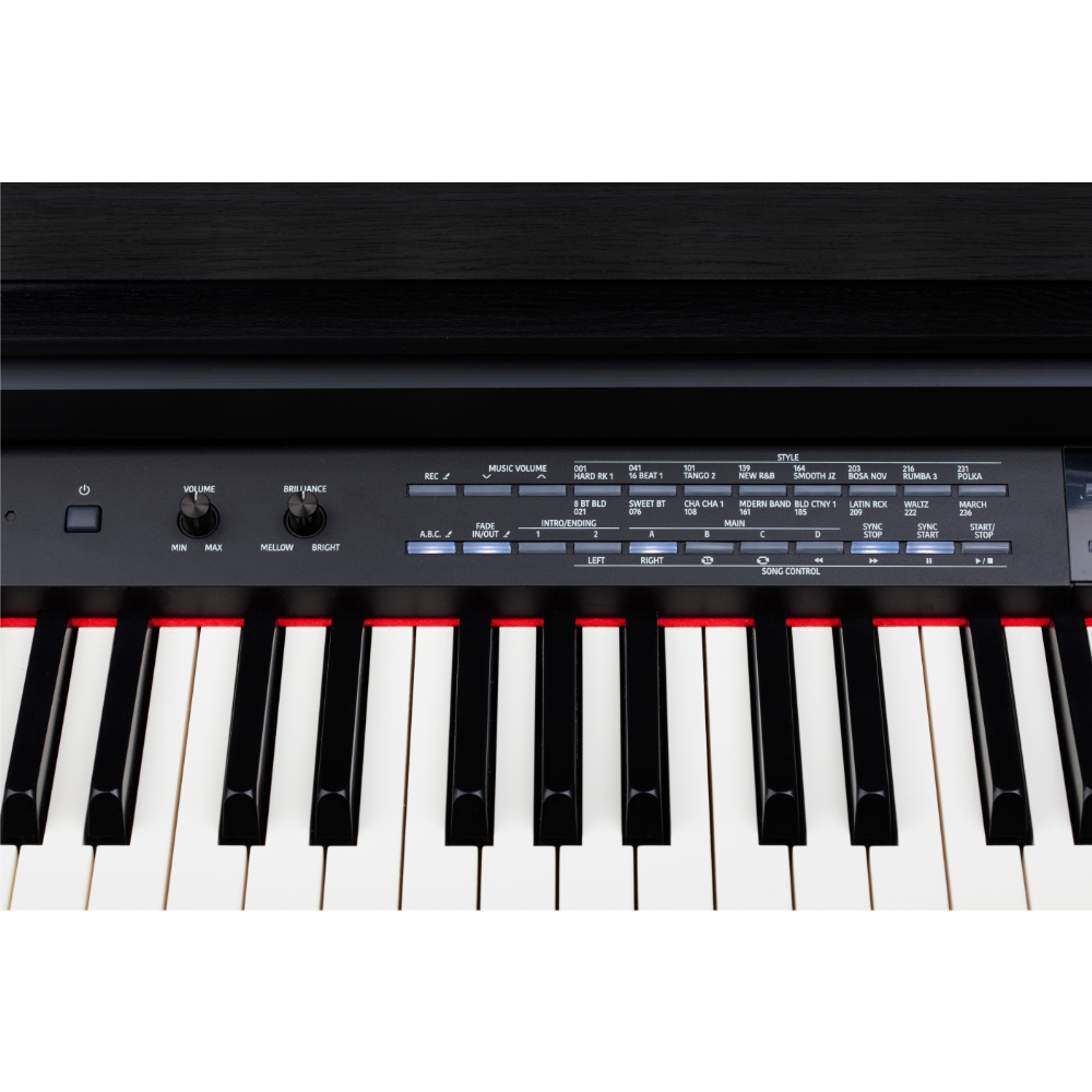 | Outros controles | Piano mode; Brilliance; Bluetooth Audio/MIDI |